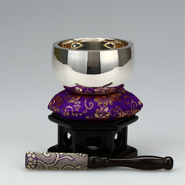 セット内容 :銀製おりん1.8寸・おりん座布団・黒檀製りん台・黒檀製りん棒・桐箱