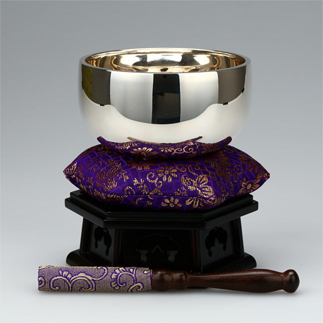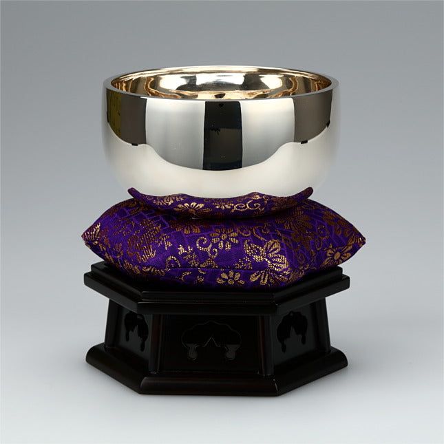 セット内容 :銀製おりん4寸・おりん座布団・黒檀製りん台・黒檀製りん棒・桐箱