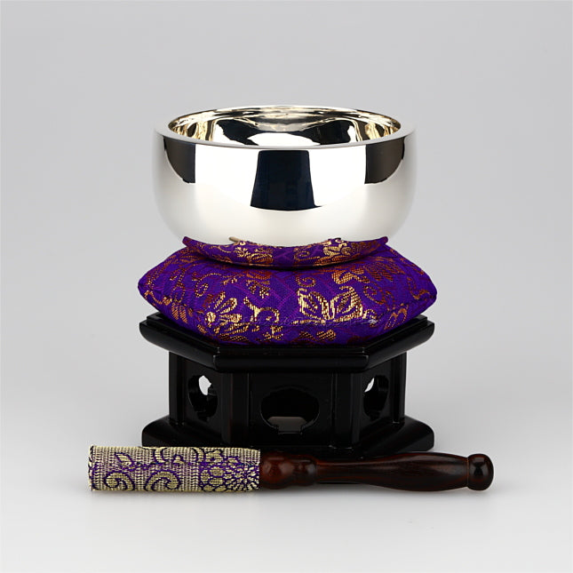 セット内容 :銀製おりん3寸・おりん座布団・黒檀製りん台・黒檀製りん棒・桐箱
